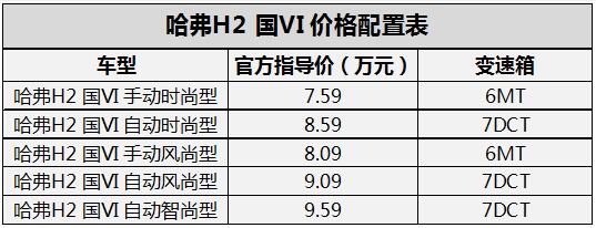 哈弗H2国VI车型的官方指导价为7.59万-9.59万元,成为国六时代年轻受众首车首选。此外,哈弗遵循“让利不让市场的原则”,给哈弗H2量身定制专属金融政策,购车可至高享7500元综合补贴,其中现金礼1000元,金融礼至高6500元,同时终端经销商还有其他优惠福利,旨在让更多消费者得享高质价比新车。